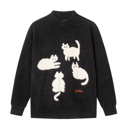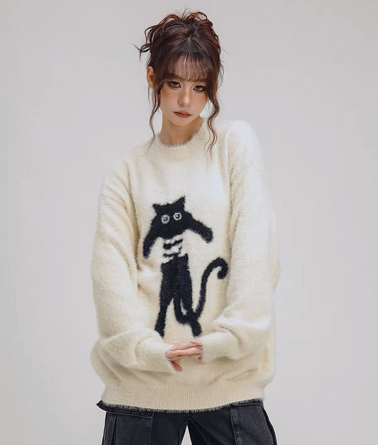 かわいい猫 ネコグッズ 猫Tシャツ 猫雑貨 猫パーカー 専門店 Y2Kテイスト ピンク猫セーター