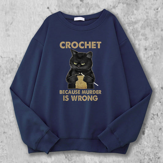 ネコグッズ 猫Tシャツ 猫雑貨 猫パーカー スエットシャツ かぎ針編みをする黒猫